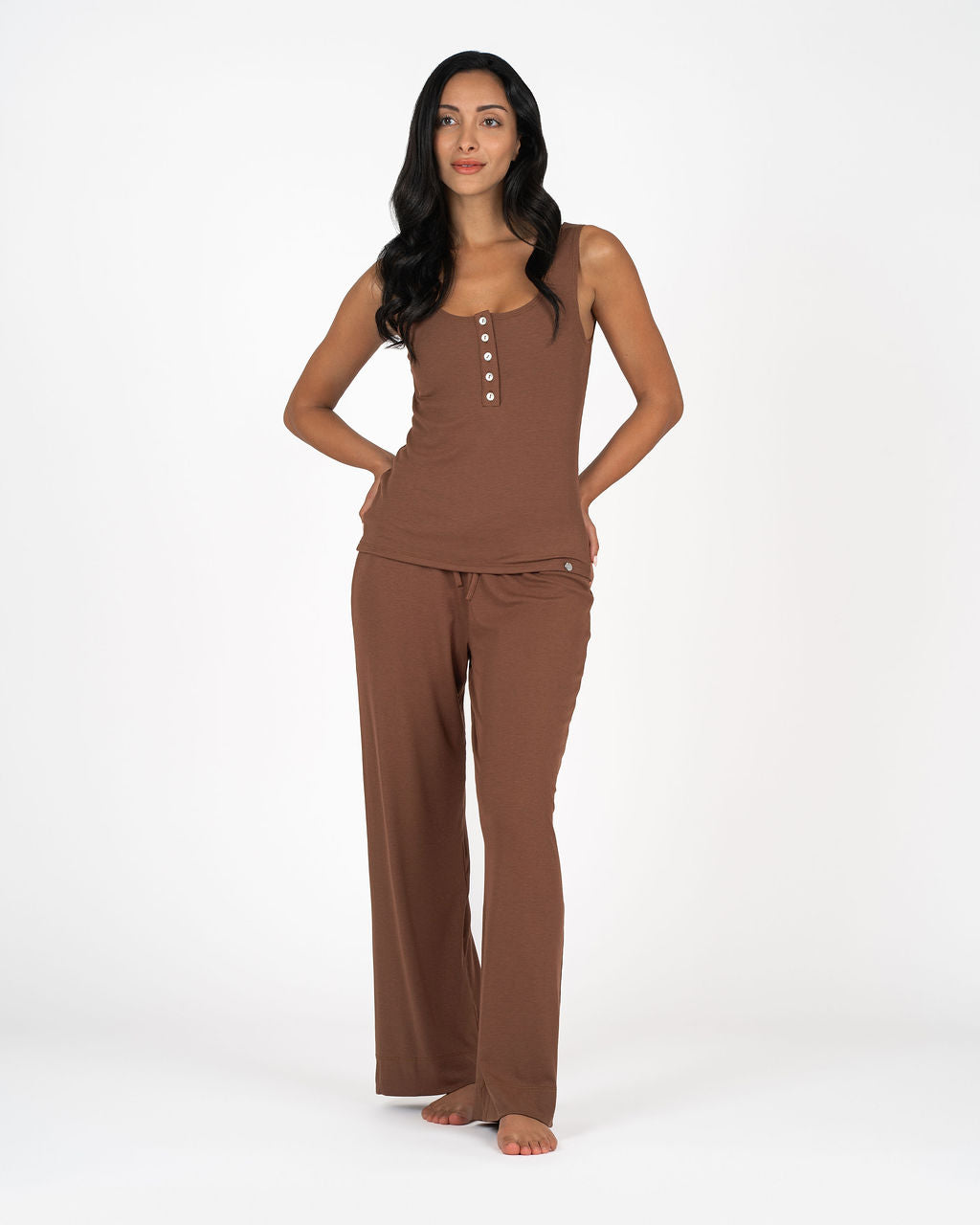 Our buttery-soft silk-blend set designed for effortless comfort. The scoop tank and relaxed pant create an easy, elevated silhouette perfect for lounging, sleeping, traveling, or styling for everyday wear. It's breathable and irresistibly soft — the set you’ll reach for again and again.
